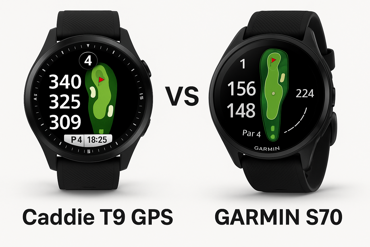- Le Caddie T9 présente un design qui ressemble davantage à une montre traditionnelle, tandis que le GARMIN S70 a un look plus moderne et élégant avec une lunette en céramique et une bande en silicone.