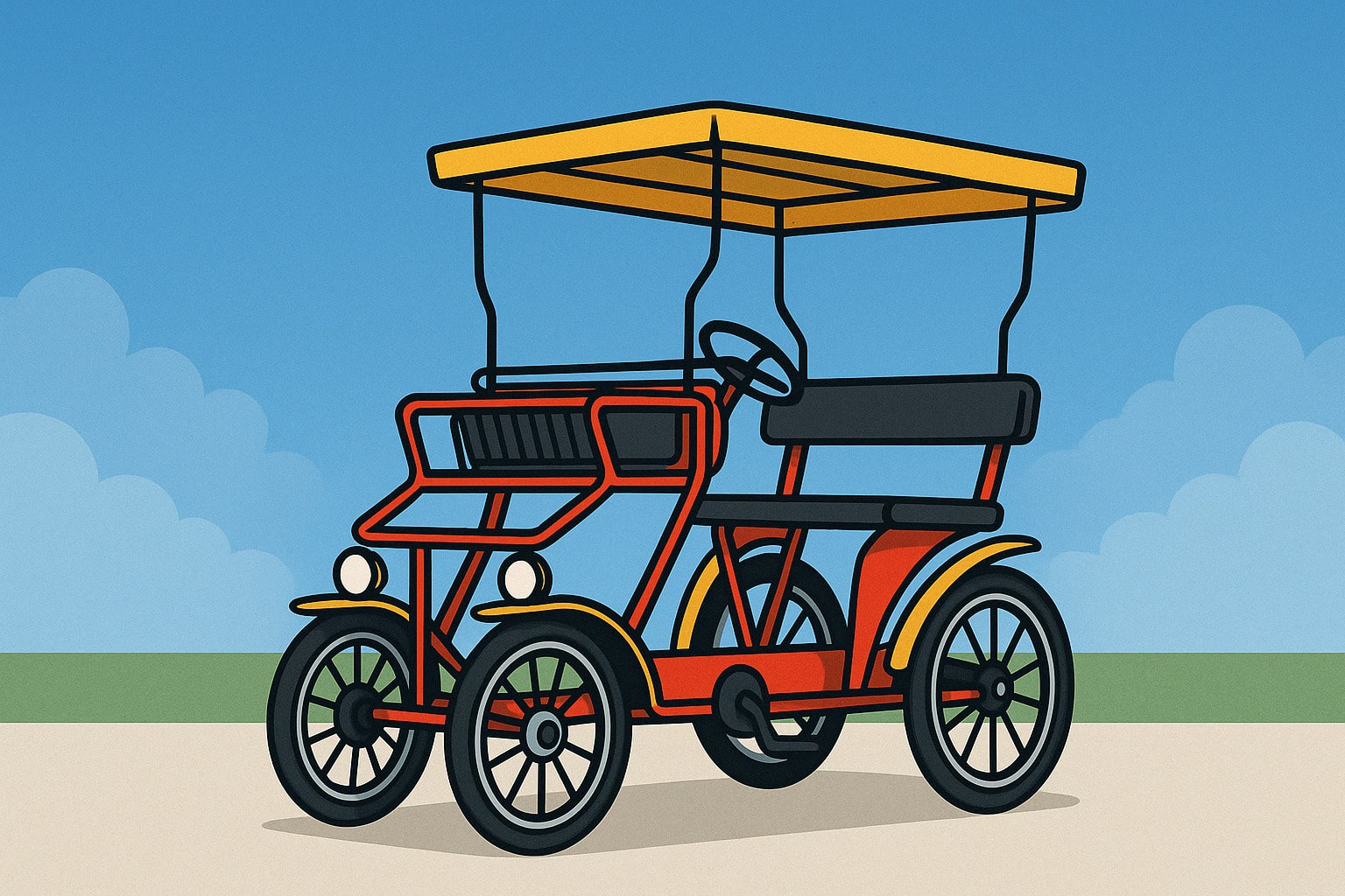 Une rosalie est un véhicule à pédales collectif, généralement doté d’un auvent, de sièges côte à côte, et d’un système de direction simple. Elle peut accueillir de 2 à 9 personnes selon les modèles. C’est un choix populaire dans les zones balnéaires ou touristiques.